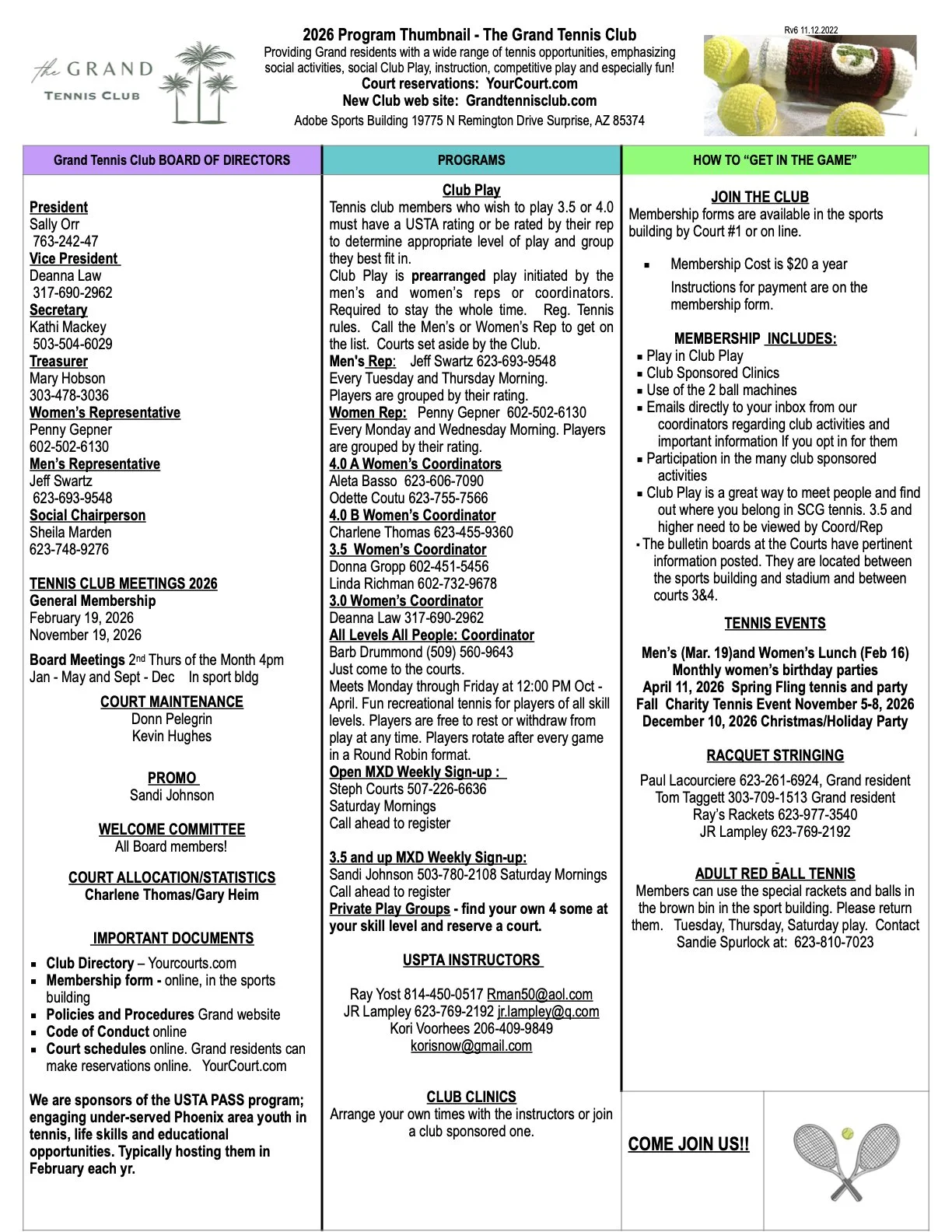 Details about the Grand Tennis Club can be found below. For questions, click on the button. INQUIRIES