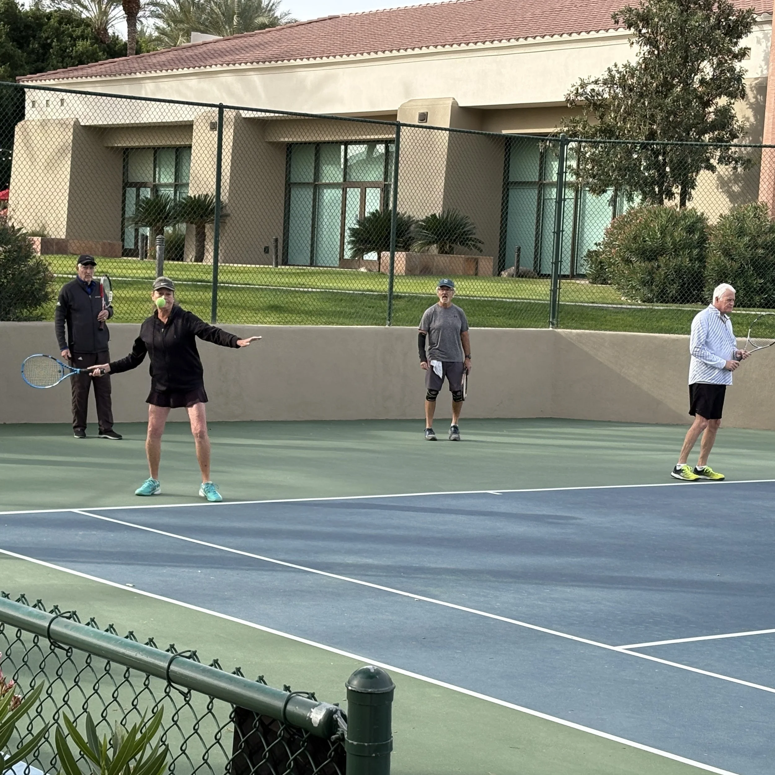 Our windscreened courts are maintained to provide an exceptional playing experience. They are resurfaced every five years, washed monthly, and equipped with shaded player benches for comfort. Rollers and brooms are always on hand to ensure quick recovery after the occasional rain, and our Stadium Court offers ample seating for players and spectators alike. Court reservations are handled through YourCourts, giving members the flexibility to reserve courts at times that work best for them.